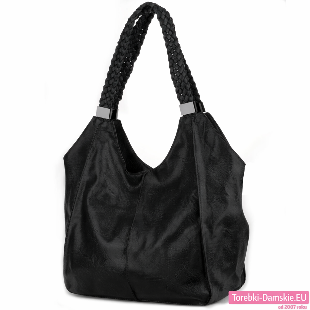 Duży worek – torba miejska hobo w czarnym kolorze, z przegrodą w środku. Wymiary 36 x 38 cm. Bardzo pojemny fason, zarówno do pracy jak i na zakupy.